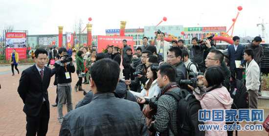 4、0291:盛捷達(dá)(南康)家居商業(yè)管理有限公司總經(jīng)理湯厚啟接受媒體采訪。