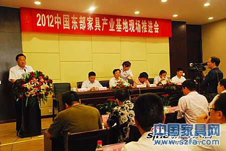 2012年5月11日, “2012中國東部家具產業基地現場推進會”在南通海安中國東部家具產業基地展示中心隆重召開。江蘇省家具行業協會會長馮建華、海安縣各級部門領導、東部家具產業基地管理公司董事長王傳威、斯可馨家居董事長胡衛東及入園企業負責人等出席參加推進會。推進會前夕,基地組織與會者參觀了東部家具產業基地的項目建設現場及已建成試生產家具企業。