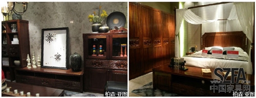 本屆展會許多老牌勁旅及新銳品牌都推出了新中式風格的實木產品,這類產品以使用名貴木材、雕工精湛和弘揚我國傳統文化著稱。