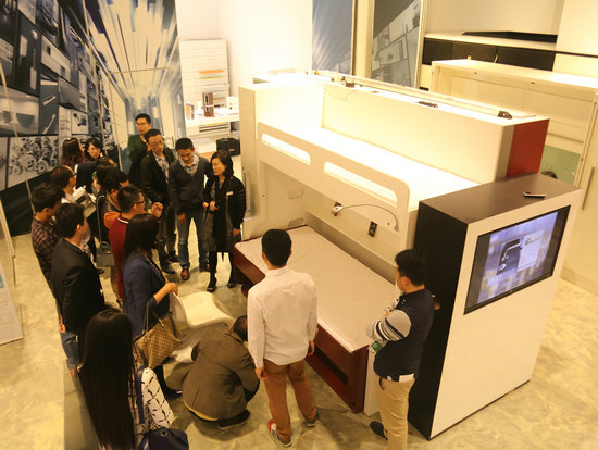 此后,周總帶領參觀者在深圳設計中心展廳和海福樂展示大巴近距離的接觸功能五金的別樣應用。參觀者對海福樂的場景功能的展示效果嘖嘖稱贊,并與周總進行深入探討家具五金的極致運用,多數設計師表示對海福樂的功能配套產品設計產生極大興趣,希望能在未來家具產品設計中運用到海福樂的產品和理念,為消費者提供更加便捷化和功能性的家具產品,實現家居空間的整合利用。