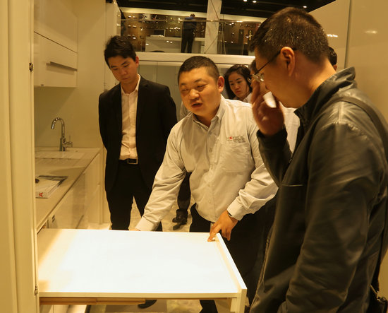 隨后,海福樂深圳設計中心設計總監周惠嫻向參觀者詳細介紹了海福樂企業的發展和家具類功能配件產品。周總介紹到,德國具有很強的設計能力,而海福樂正是德國設計能力向中國的延伸,將簡單的產品設計出不同的、別具特色的效果,運用實景應用產品的展示而非簡單的羅列來展示海福樂家具五金的魅力和功能。海福樂是全球領先的家具五金、建筑五金以及電子門禁系統的供應商,全球范圍內有37家子公司和眾多經銷商,超過6600名員工,在中國設計了1個工程與采購基地,4家銷售分公司和30個銷售辦事處。海福樂產品眾多,擁有22萬余種產品,2016年更是結合市場需求推出翻門支撐、連接件、燈光解決方案、拉籃、家具拉手和音響系統等的新產品,海福樂堅持“以客戶為中心的熱情”,擁有“高瞻遠矚的企業家精神”,這使得德國海福樂成為全球領先的五金和電子門禁的供應商。