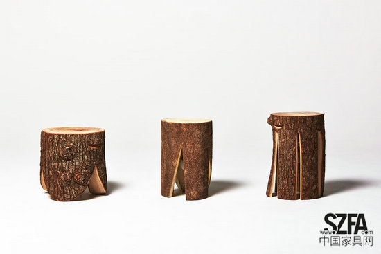 在當今,與自然接觸已是難得的體驗。LOG將自然帶進你家。傳統的原木,直接掏出一部分,采用“旋轉鋸”、“彎曲鋸”等多種鋸法,暴露木材本真原始但又極為讓人震撼的剖面。不細膩,粗獷但又極為動人的木,呈現在你我面前,撞進心里,啊,這就是木。外側的樹皮也完整的向人娓娓道來森林故事。